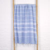 Die schönen blau gestreiften Hamamtücher von Ottomania sind aus hydrophiler Baumwolle. Sie nehmen sehr leicht Feuchtigkeit auf, trocken wiederum schnell. Man kann sie gut waschen. Trotz seiner Größe ist das aufgefaltete Tuch sehr kompakt und wiegt nur 250 Gramm. Daher ist es ideal für den Transport im Koffer, Rucksack oder in der Strandtasche. Nimm es mit auf Reisen zum Strand, auf dein Boot, ins Schwimmbad, in die Sauna oder zum Sport. Auch für die Babypflege eignen sich die Hamamtücher ausgezeichnet. Man kann diese Tücher nicht nur zum Abtrocknen im Badezimmer, sondern auch als Unterlaken oder als Sommerdecke im Babybett schön einsetzen. Sie sind auch ideal, um das Kind beim Stillen einzuwickeln und so ein sehr schönes und praktisches Geburtsgeschenk. All unsere Hamamtücher sind handgewebt. Hierdurch gibt es Unterschiede in der Farbe. Auch kleine Webfehler sind möglich und gehören zum Produkt.