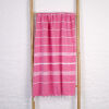 Die schönen ruby gestreiften Hamamtücher von Ottomania sind aus hydrophiler Baumwolle. Sie nehmen sehr leicht Feuchtigkeit auf, trocken wiederum schnell. Man kann sie gut waschen. Trotz seiner Größe ist das aufgefaltete Tuch sehr kompakt und wiegt nur 250 Gramm. Daher ist es ideal für den Transport im Koffer, Rucksack oder in der Strandtasche. Nimm es mit auf Reisen zum Strand, auf dein Boot, ins Schwimmbad, in die Sauna oder zum Sport. Auch für die Babypflege eignen sich die Hamamtücher ausgezeichnet. Man kann diese Tücher nicht nur zum Abtrocknen im Badezimmer, sondern auch als Unterlaken oder als Sommerdecke im Babybett schön einsetzen. Sie sind auch ideal, um das Kind beim Stillen einzuwickeln und so ein sehr schönes und praktisches Geburtsgeschenk. All unsere Hamamtücher sind handgewebt. Hierdurch gibt es Unterschiede in der Farbe. Auch kleine Webfehler sind möglich und gehören zum Produkt.